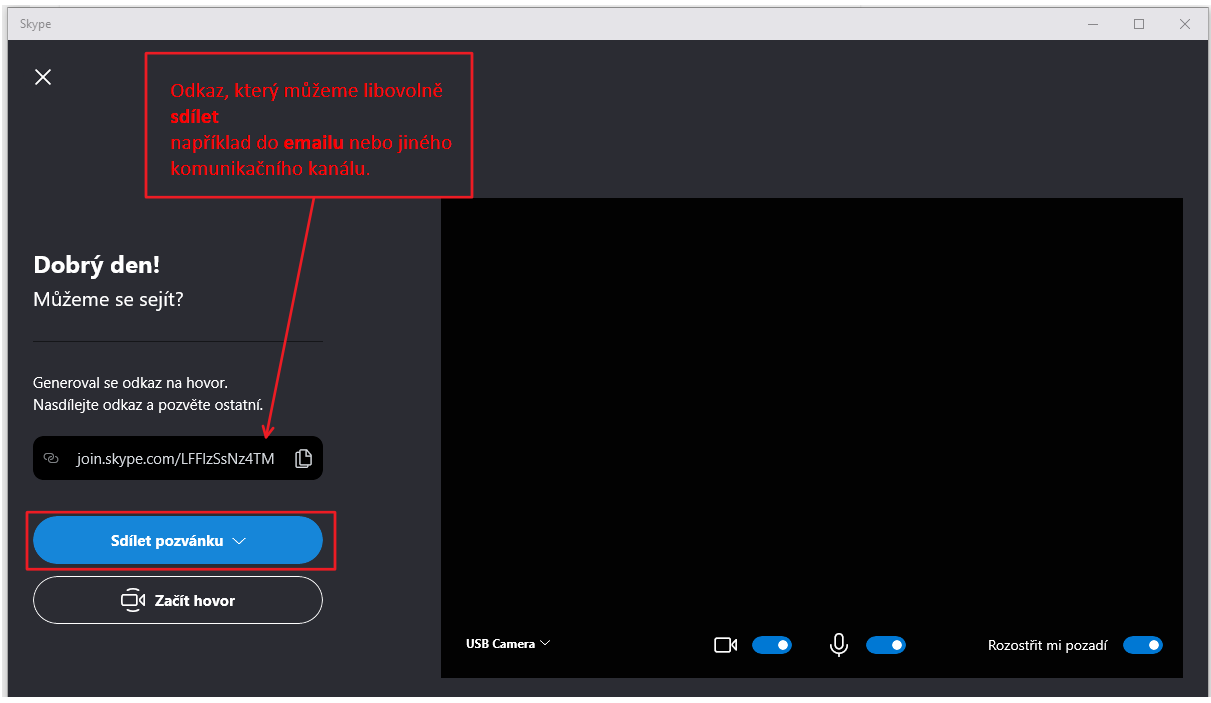 Při vytvoření schůzky můžeme použít tyto možnosti: