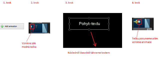 Rozpohybování provedeme tím, že samotný text vybereme a táhneme ním na nějaké místo. Tím vznikne vlastně stopa pro pohyb textu. Postup je znázorněn na obrázku níže.