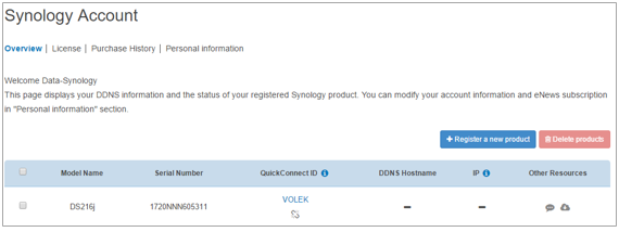 8. krok – byl vytvořen i účet na webu Synology
